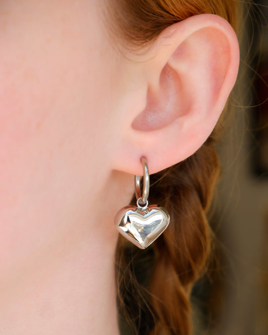 Puffed Heart Hoop Earrings